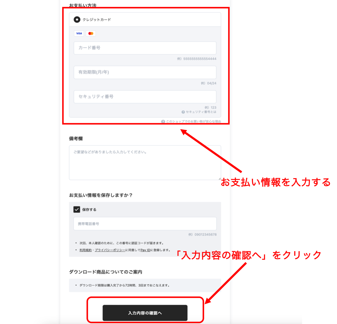 購入が完了すると、商品ダウンロードのリンクボタンのある、購入完了画面が表示されます。「ダウンロード画面へ」をクリックすると、ダウンロード画面が表示されます。